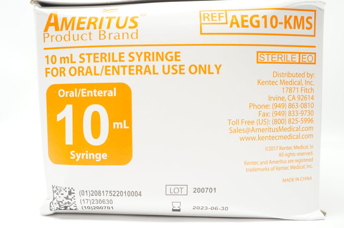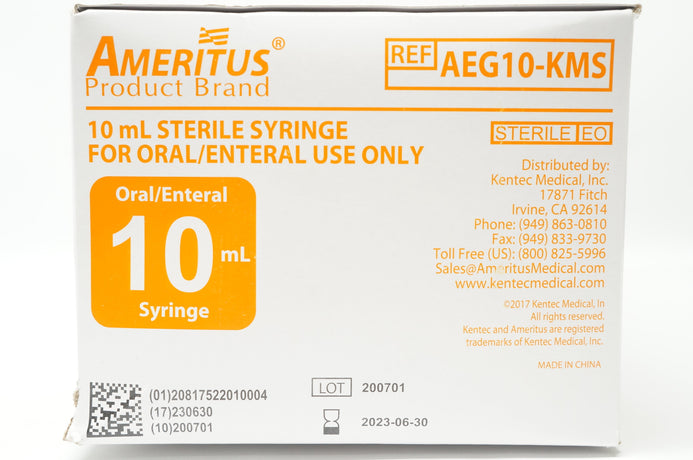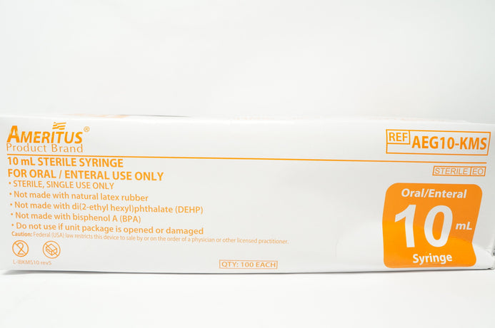- Ameritus AEG10-KMS Sterile Syringe For Oral / Enteral Use Only 10ml - Box of 100