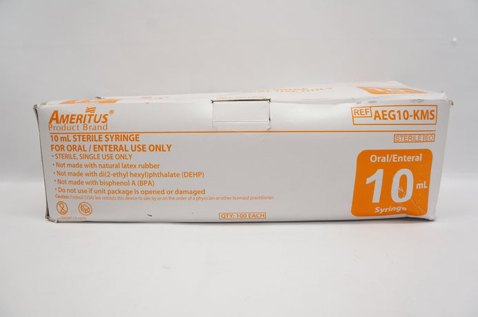 Ameritus AEG10-KMS Sterile Syringe For Oral / Enteral Use Only 10ml Pack of 100