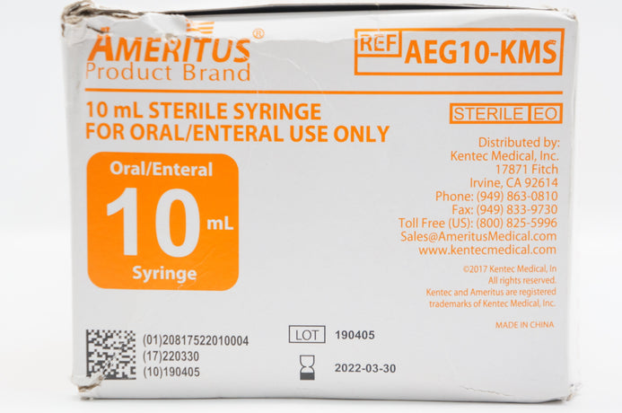 Ameritus AEG10-KMS Sterile Syringe For Oral / Enteral Use Only 10ml - Pack of 100