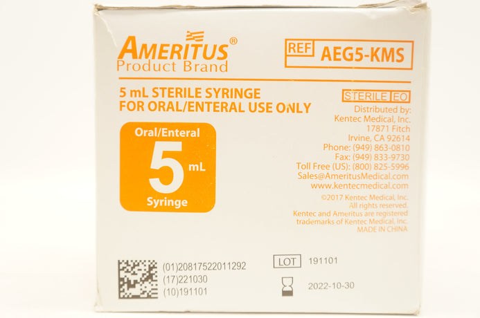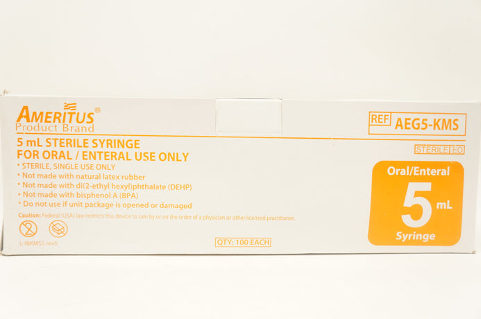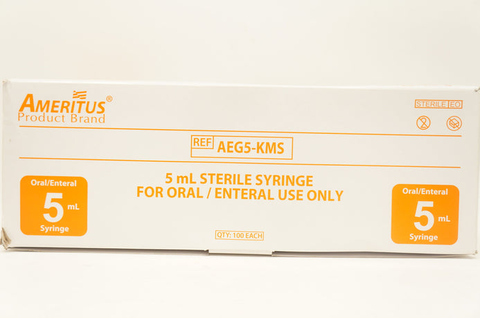 Ameritus AEG5-KMS 5ml Sterile Syringe for Oral/Enteral Use Only - Box of 100