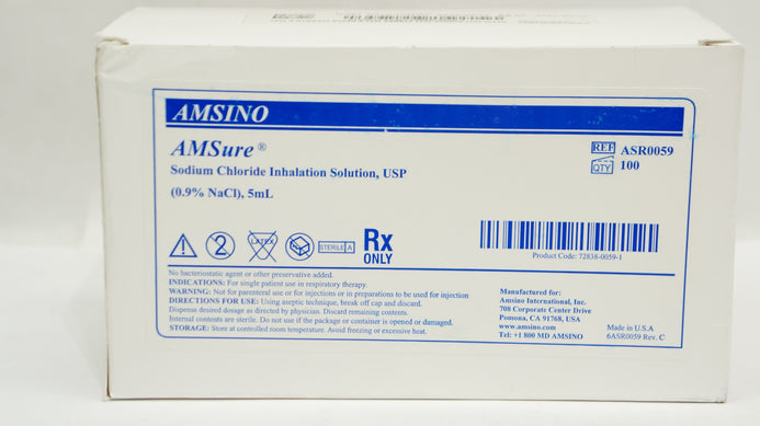 Amsino ASR0059 Sodium Chloride Inhalation Solution 0.9% USP, 5ml -Box of 100