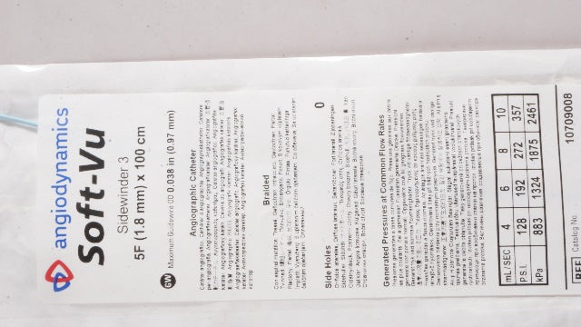 Angiodynamics 10709008 Soft-Vu Sidewinder3 Angiographic cath 5F 0.038in 100cm(x)