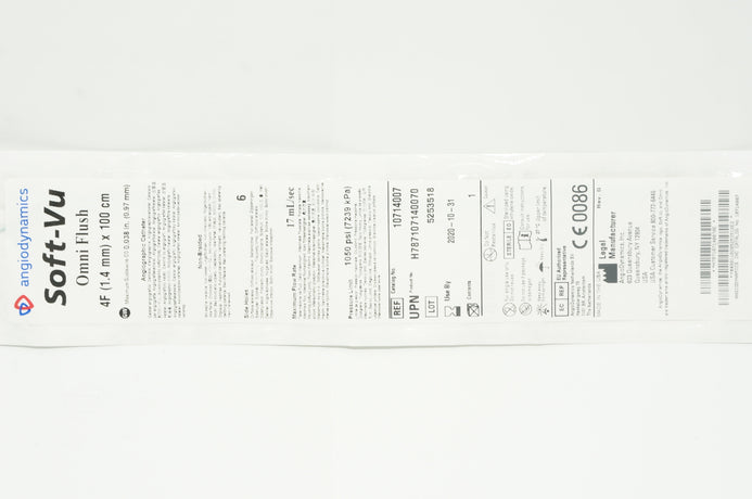 AngioDynamics 10714007 Soft-Vu Omni Flush Angiographic Cath. 4F x 100cm (x)