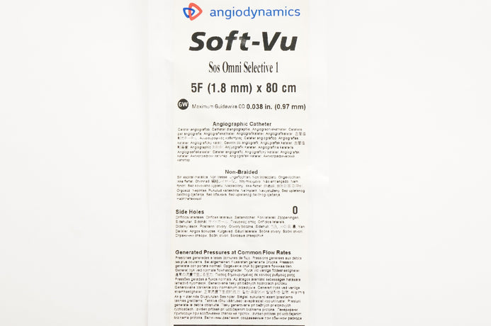 Angiodynamics 10720401 Soft-Vu Sos Omni Selective1 Angiographic Cath.5Fx80cm (x)