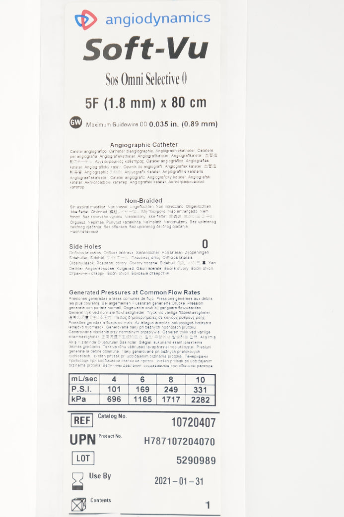 - AngioDynamics 10720407 Soft-Vu Angiographic Cath. 5F x 80cm (x)