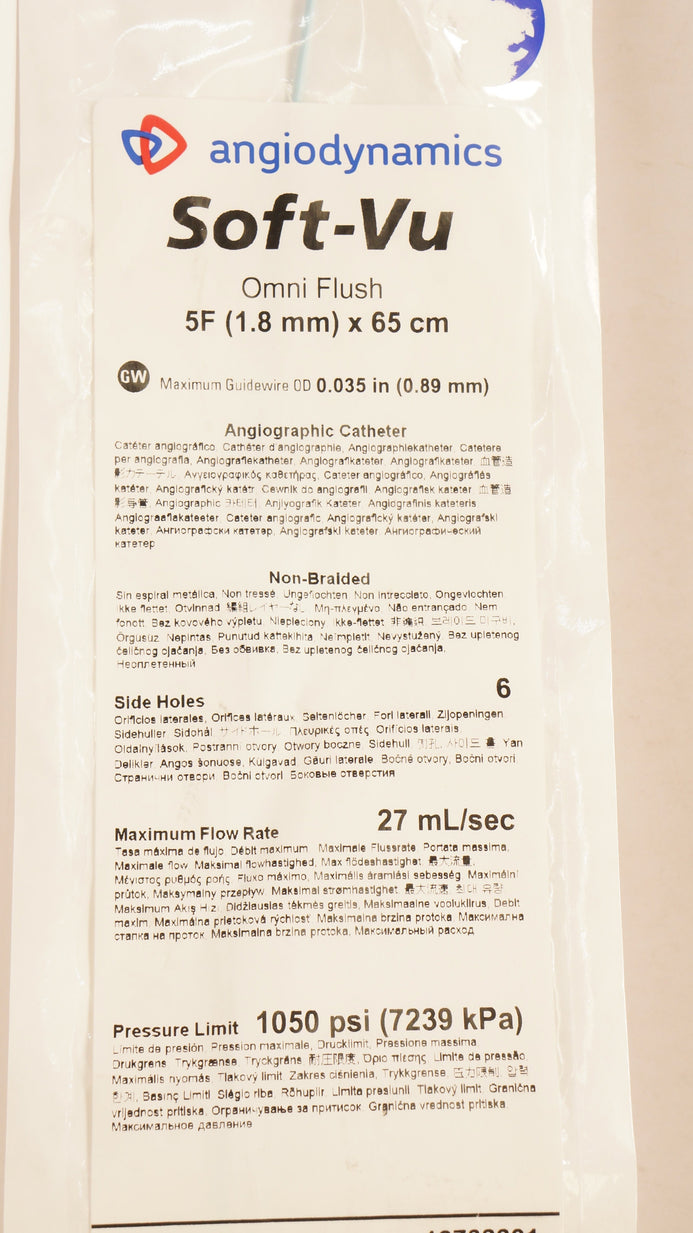 AngioDynamics 10732201 Soft-Vu Angiographic Cath. 5F x 65cm x 0.035inch OD (x)