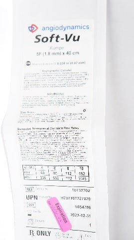 - Angiodynamics 10732702 Soft-Vu Kumpe Angiographic Cath. 5F x 40cm x 0.038inch(x)
