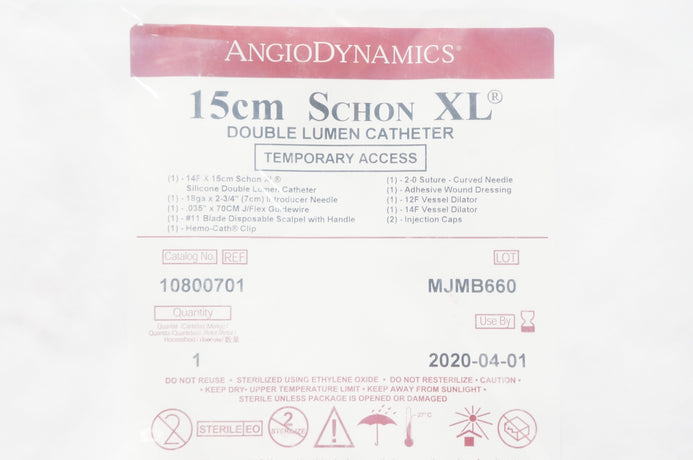 - AngioDynamics 10800701 Schon XL Double Lumen Cath. Temporary Access 15cm (x)