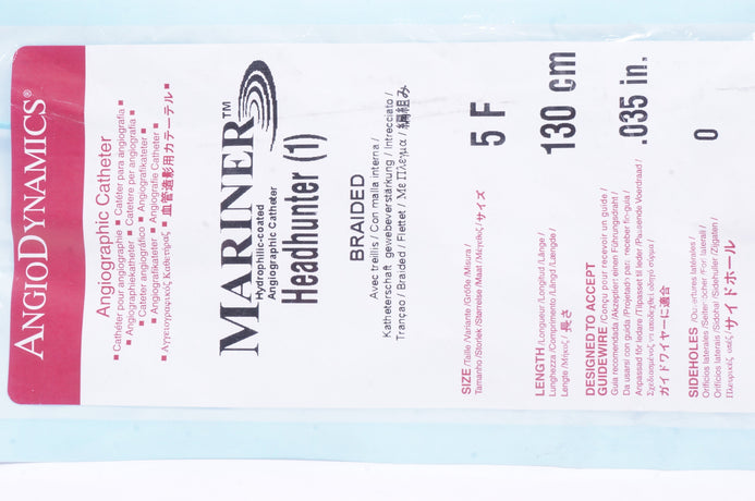 AngioDynamics 11708907 Mariner Headhunter Angiographic Cath. 5Fx130cmx.038inch