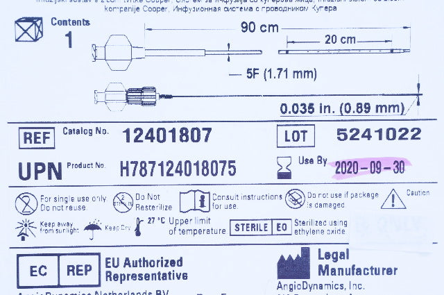 Angiodynamics 12401807 UniFuse Infusion System With Cooper Wire 5F x 90cm x 20cm