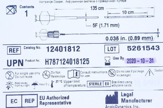 Angiodynamics 12401812 UniFuse Infusion System With Cooper Wire 5F x 135cm x 10cm