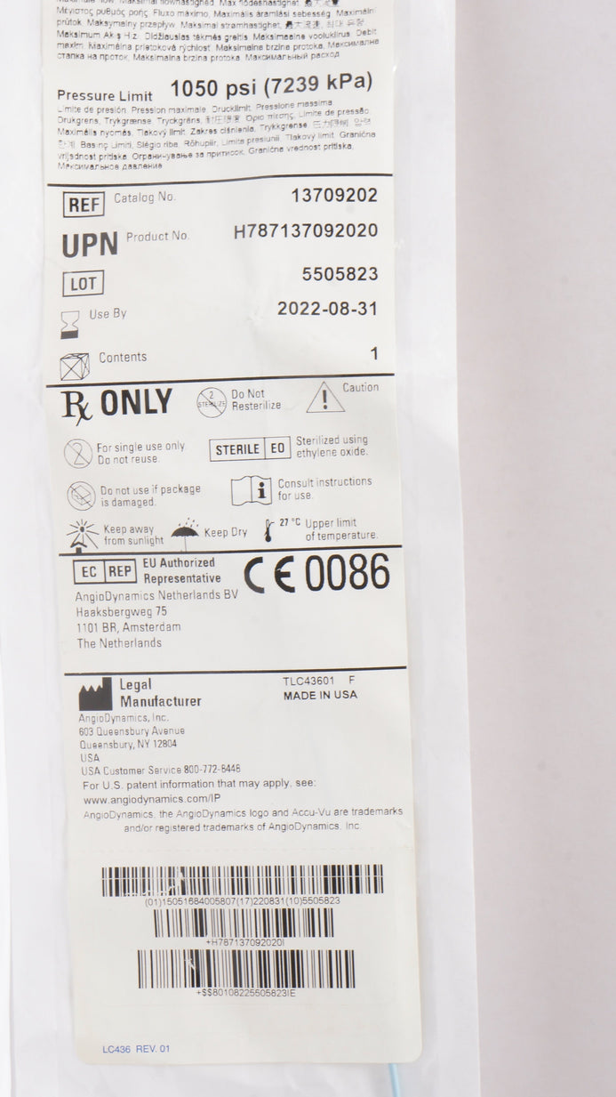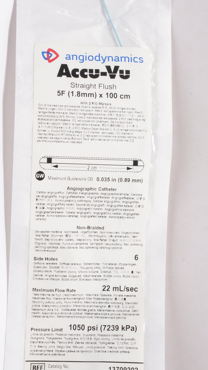 - AngioDynamics 13709202 Accu-Vu Straight Flush Cath. 5F x 100cm x 0.035inch (x)