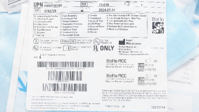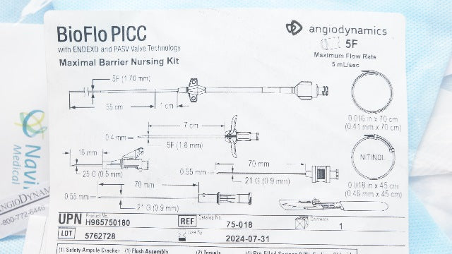 - Angiodynamics 75-018 BioFlo PICC Maximal Barrier Nursing Kit 5F x 55cm