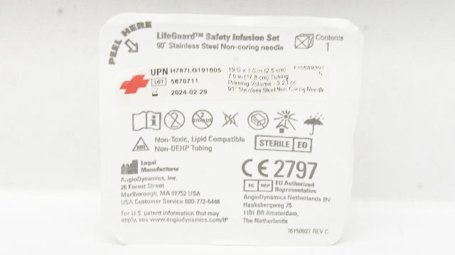 - AngyoDynamics H787LG191005 LifeGuard Safety Infusion Set 90° Non-Coring Ndle (x)