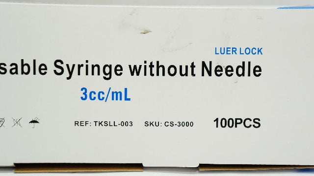 Anhui Tiankang Medical TKSLL-003 Tkmd Syringe without Ndle 3cc/mL - Box of 100