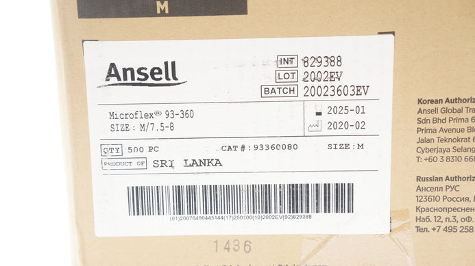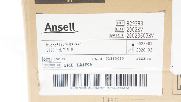 - Ansell 93-360 Microflex Size M/7.5-8 - Box of 500 PC