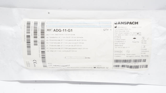 - Anspach ADG-11-G1 1.1mm Twist Drill for 1.50mm Screw (x)