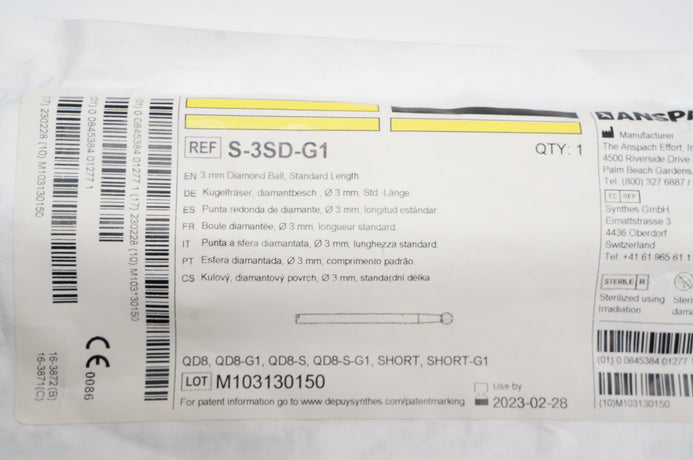 Anspach S-3SD-G1 Diamond Ball, Standard Length, 3mm