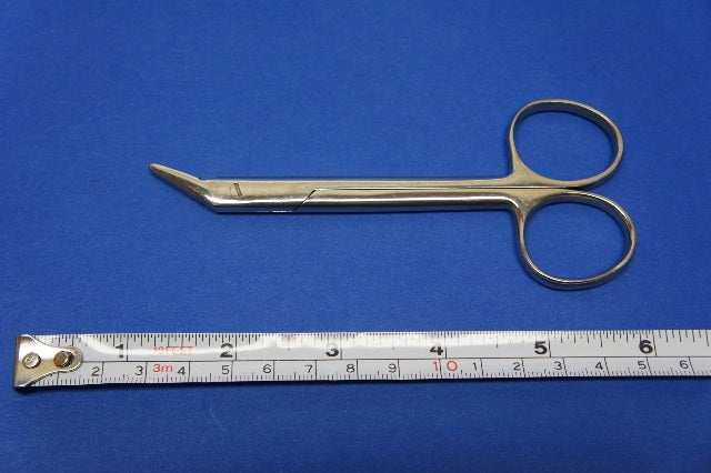 General characteristics item description: cres material; 4.750 (120.65 mm) o/a length; blunt blade point; angled to one side shape; one serrated blade; 15mm blade length; short; surgical instrument for cutting wire sutures and wire mesh; unit issue ea
