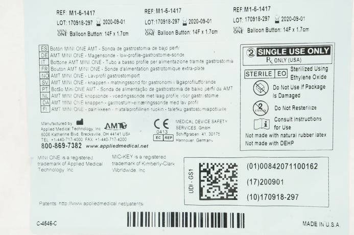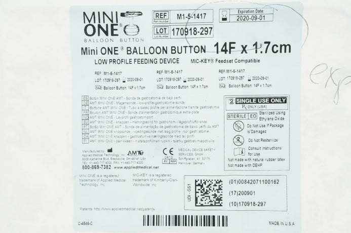 - Applied M1-5-1417 MiniONE Balloon Button Kit With ENFit, 14Fr x 1.7cm (x)