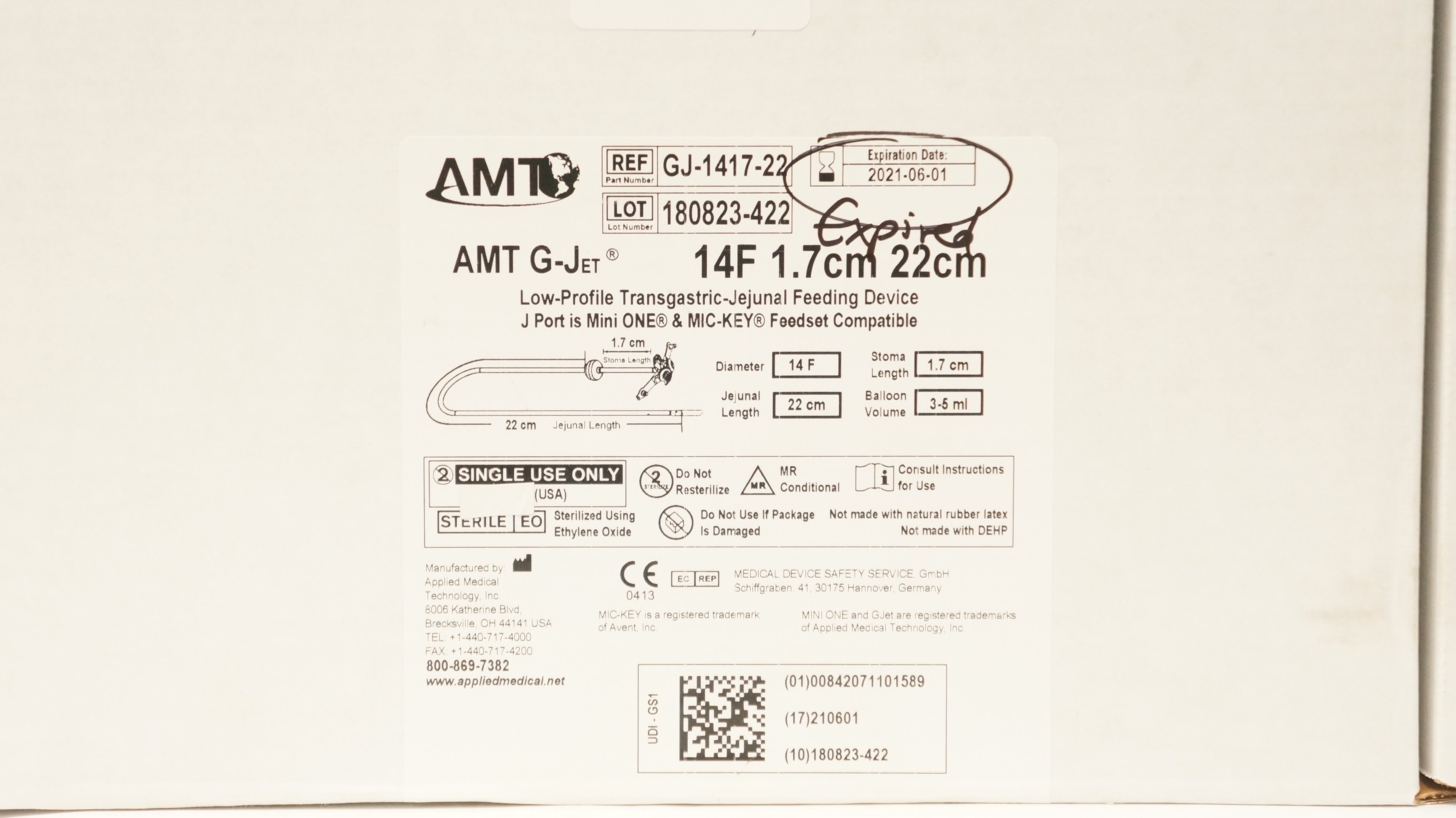 Applied Medical GJ-1417-22 AMT G-Jet Feeding Device 14F x 1.7cm x 22cm (x)