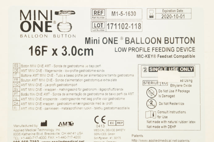 Applied Medical M1-5-1630 Mini One Balloon Button Feeding Device 16F x 3.0cm (x)