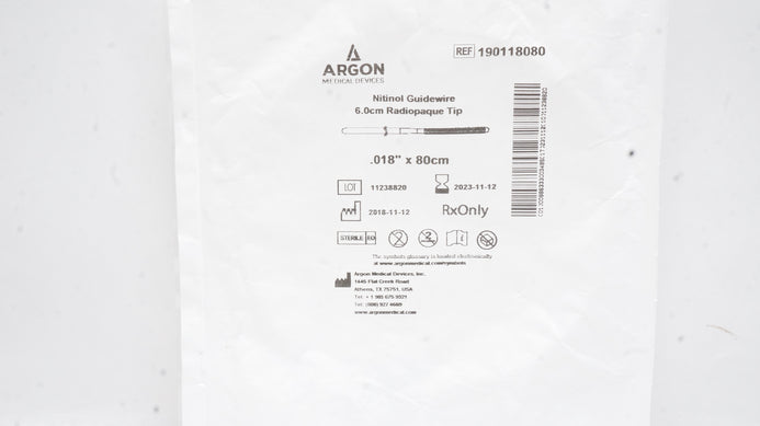 - Argon 190118080 Nitinol Guidewire 6.0cm Radiopaque Tip .018inch x 80cm (x)