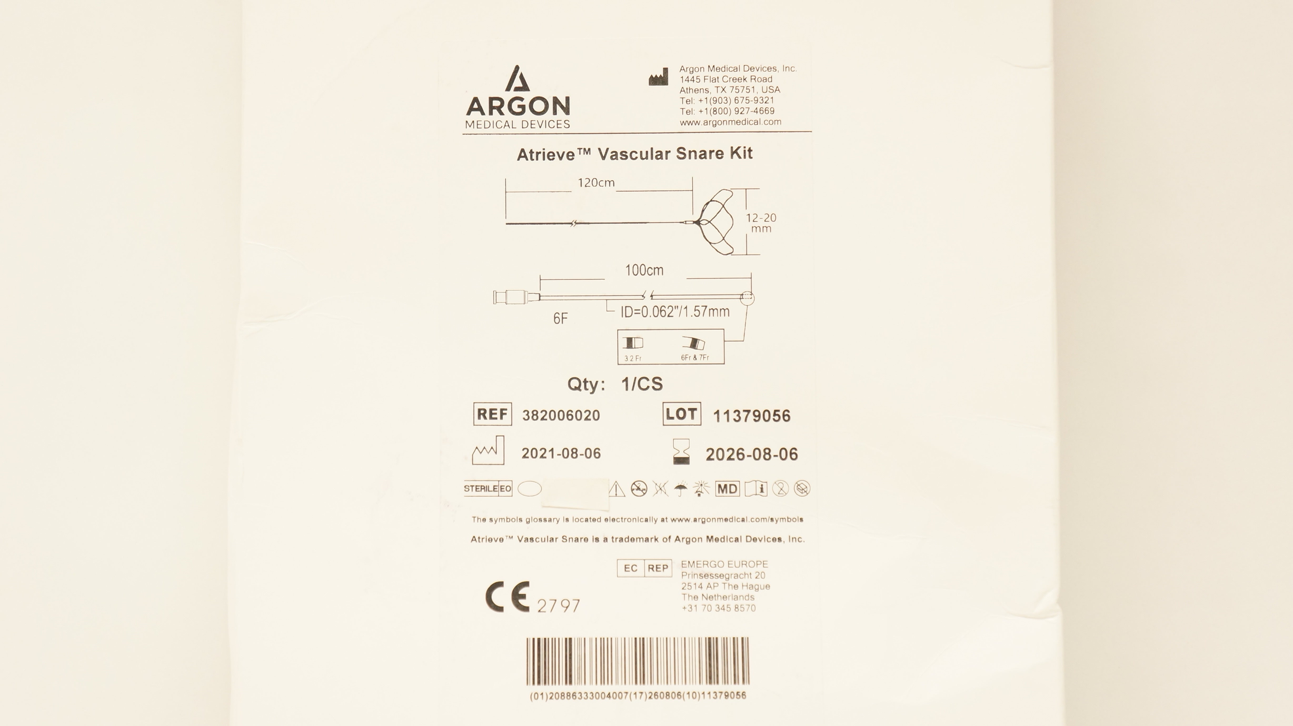 Argon 382006020 Atrieve Vascular Snare Kit 6F x 12-20mm