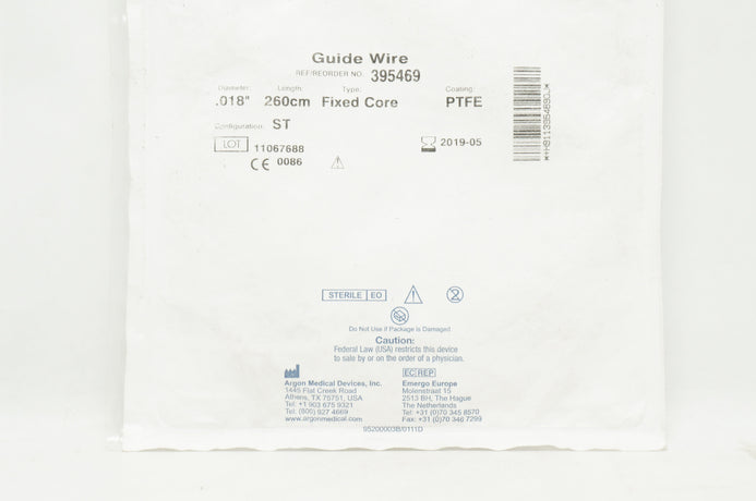 - Argon 395469 Guide Wire .018inch 260cm Fixed Core PTFE (x)