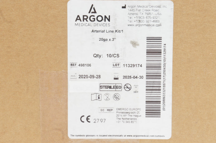 - Argon 498106 Arterial Line Kit/1 20Ga x 3inch - Case of 10