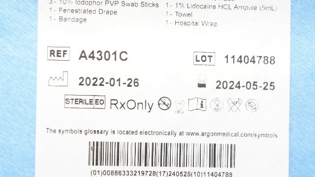 - Argon A4301C Adult Lumbar Puncture Tray w/Spinal Ndle 20ga x 8.9cm
