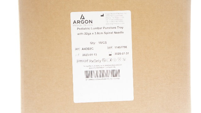 - Argon A4302C Pediatric Lumbar Puncture Tray W/22Ga x 38cm Spinal Ndle- Box of 10