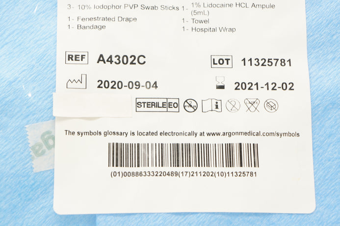 - Argon A4302C Pediatric Lumbar Puncture Tray With 22 Ga x 38 cm Spinal Ndle.