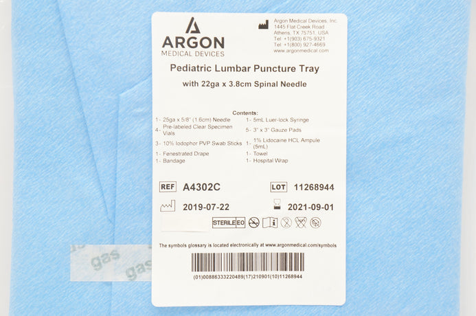 Argon A4302C Pediatric Lumbar Puncture Tray With 22Ga x 38cm Spinal Ndle (x)