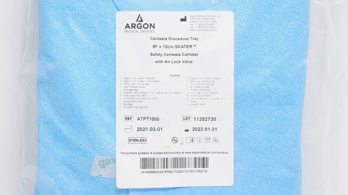 - Argon ATPT1000 Centesis Procedure Tray 8F x12cm Skater Safety Centesis Cath. (x)