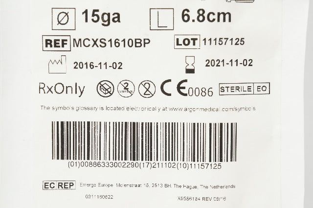 - Argon MCXS1610BP Co-Axial Introducer Ndle. 15Ga x 6.8cm (x)