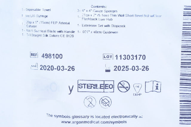 - Argon Medical Devices 498100 Arterial Line Kit/1 20ga x 6inch