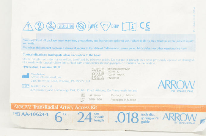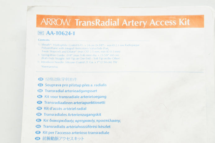 Arrow AA-10624-1 TransRadial Artery Access Kit 6Fr 24cm .018inch (x)