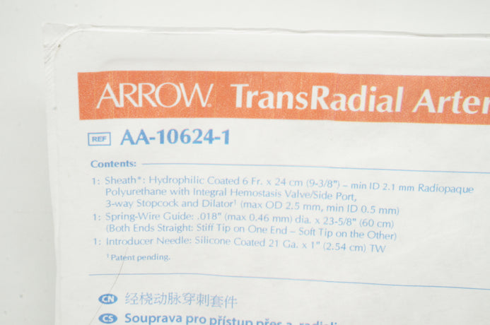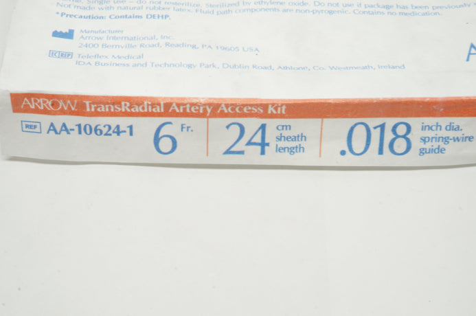 Arrow AA-10624-1 TransRadial Artery Access Kit 6Fr x 24cm x .018inch (x)