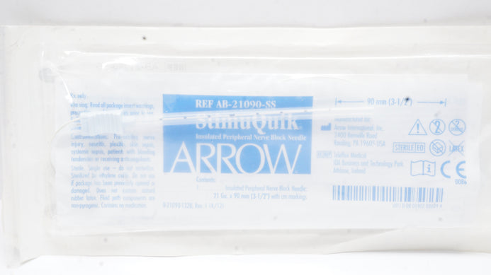 Arrow AB-21090-SS StimuQuik Insulated Peripheral Nerve Block Needle 21Ga x 3 1/2inch