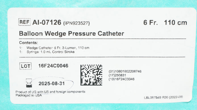 - Arrow AI-07126 Balloon Wedge Pressure Cath. 6Fr. 2-Lumen 110cm (x)