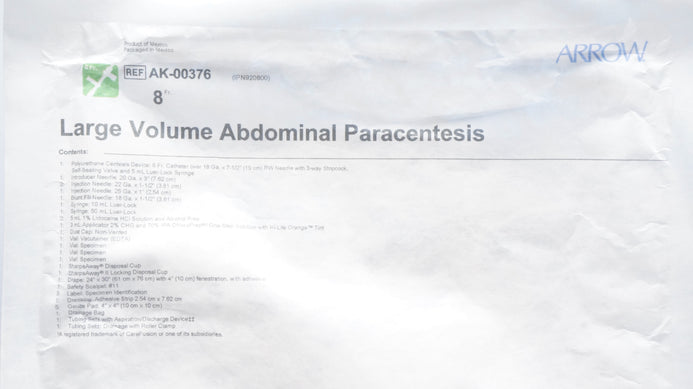 Arrow AK-00376 Large Volume Abdominal Paracentesis Kit 8Fr