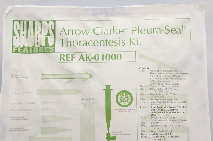 Arrow AK-01000 Clarke Pleura-Seal Thoracentesis Kit 8Fr