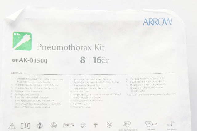 - Arrow AK-01500 Pneumothorax Kit 8Fr. x 16cm Length Cath. (x)