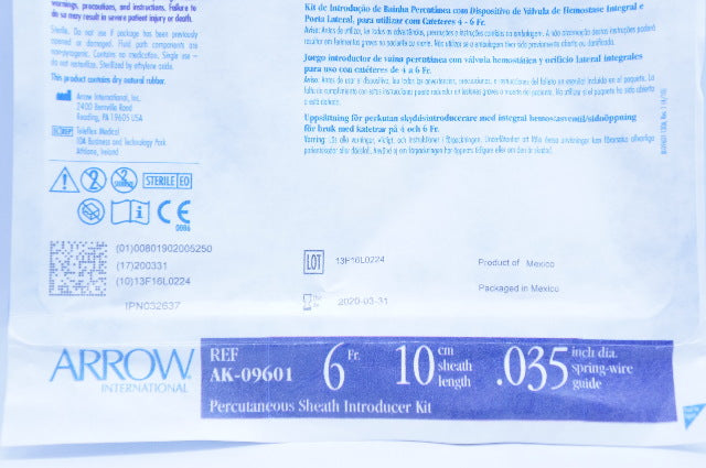 Arrow AK-09601 Percutaneous Sheath Introducer Kit 6FR x 10cm x .035inch (x)