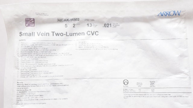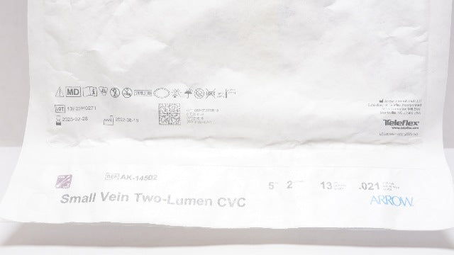 Teleflex AK-14502 Arrow Small Vein Two-Lumen CVC 5Fr x 13cm x .021inch