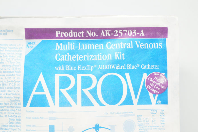 - Arrow AK-25703-A Multi-Lumen CVC Kit 7Fr x 20cm x 0.032inch (x)