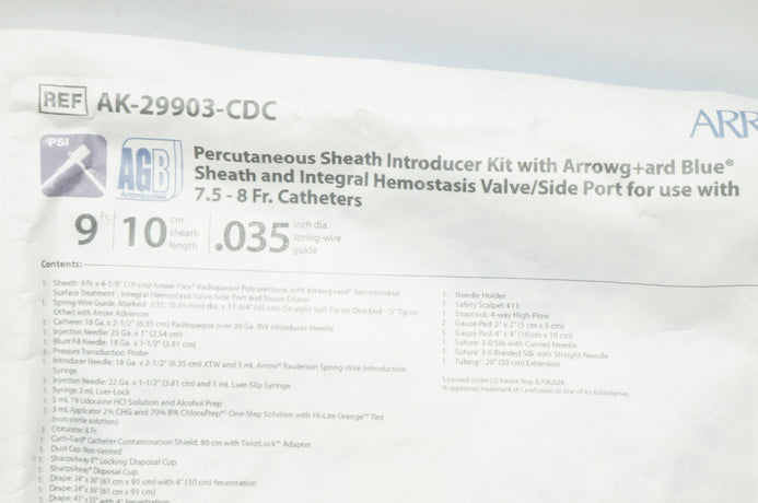 Arrow AK-29903-CDC AGB Percutaneous Sheath Introducer Kit 9Fr x 10cm x .035 inch