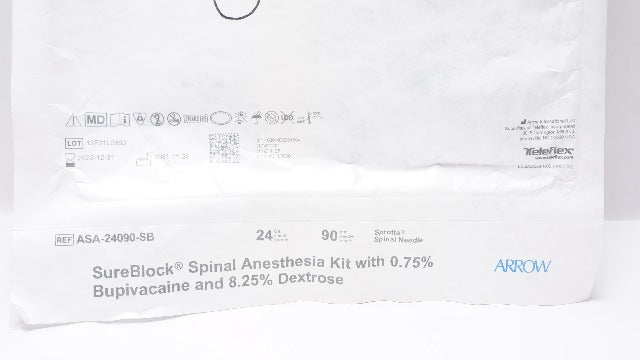 Arrow ASA-24090-SB  SureBlock Spinal Anesthesia Kit with 0.75% Bupivacaine and 8.25% Dextrose 24Ga x 90mm