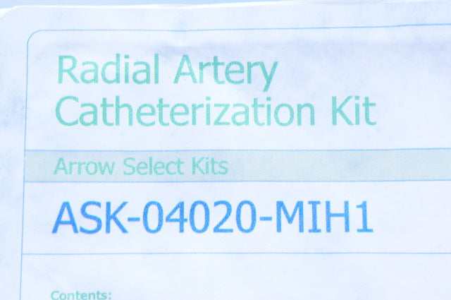 Arrow ASK-04020-MIH1 Radial Artery Cath. Kit 20Ga x 4.45 cm x .018 inch (x)